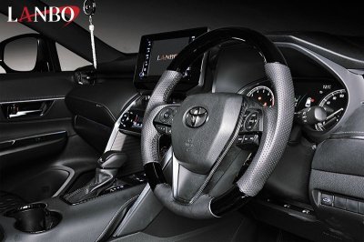 - リアルカーボン×本革を施した上質感ある仕上がりでワンランクアップな車内空間を演出します。